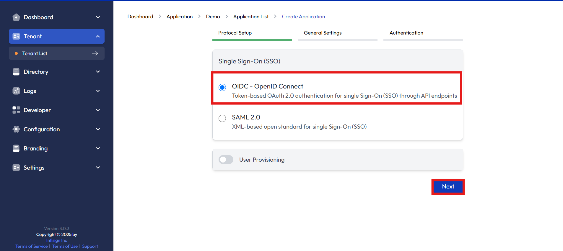 - Choose OIDC - OpenID Connect Protocol to proceed.