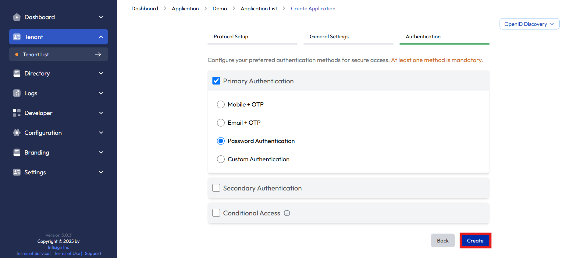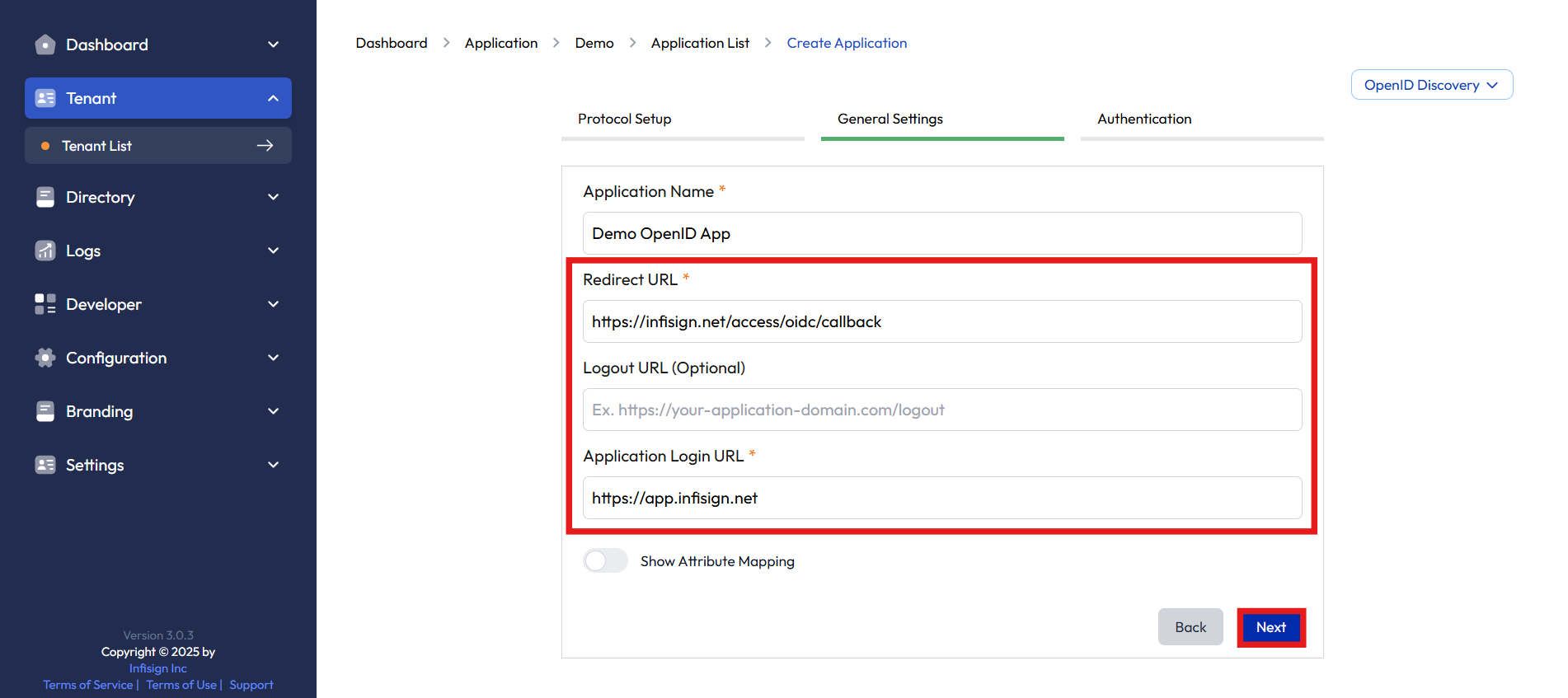 - Redirect URL: Provide the callback URL of the Service Provider (SP) application.